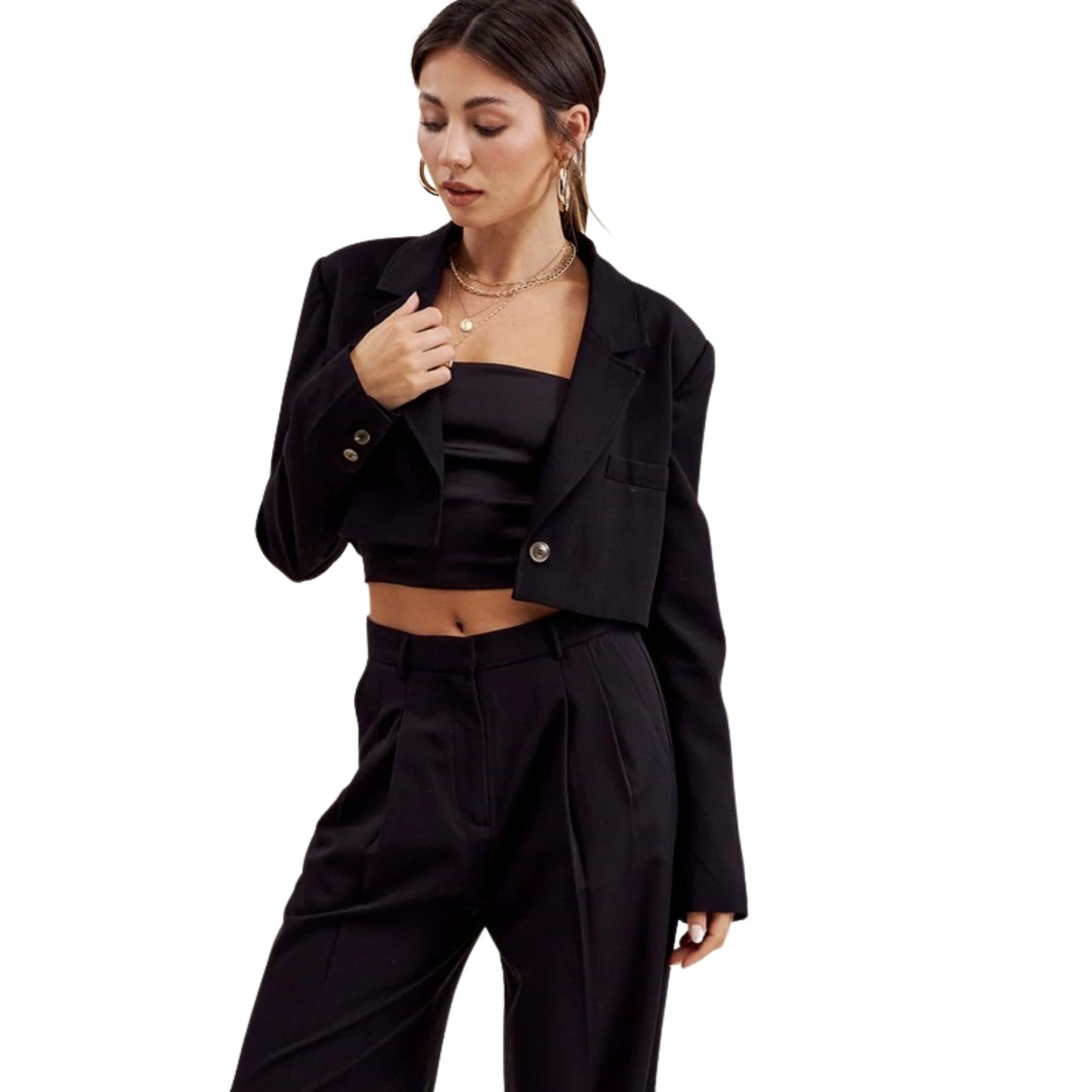 La veste courte pour le look chic et avant-gardiste que vous recherchiez. Associez cette pièce à un pantalon taille haute pour créer une silhouette équilibrée ou soyez audacieux avec votre pantalon en cuir préféré. Cette pièce élégante mais polyvalente peut changer de personnalité en fonction de ce avec quoi vous la portez.