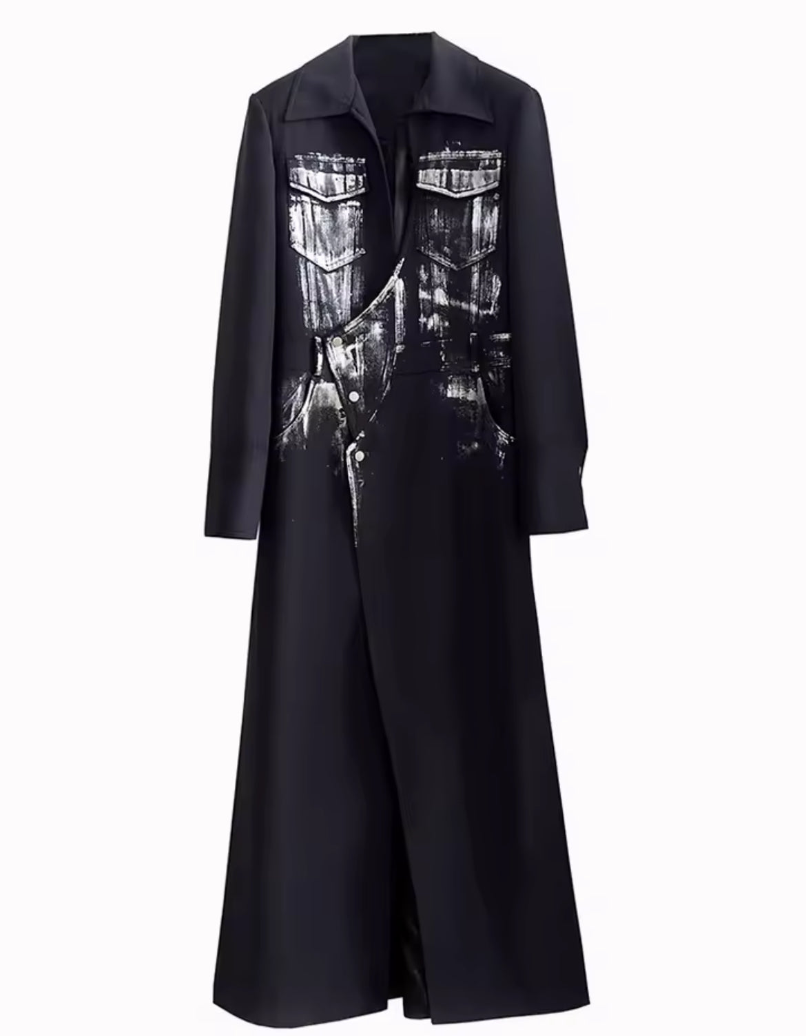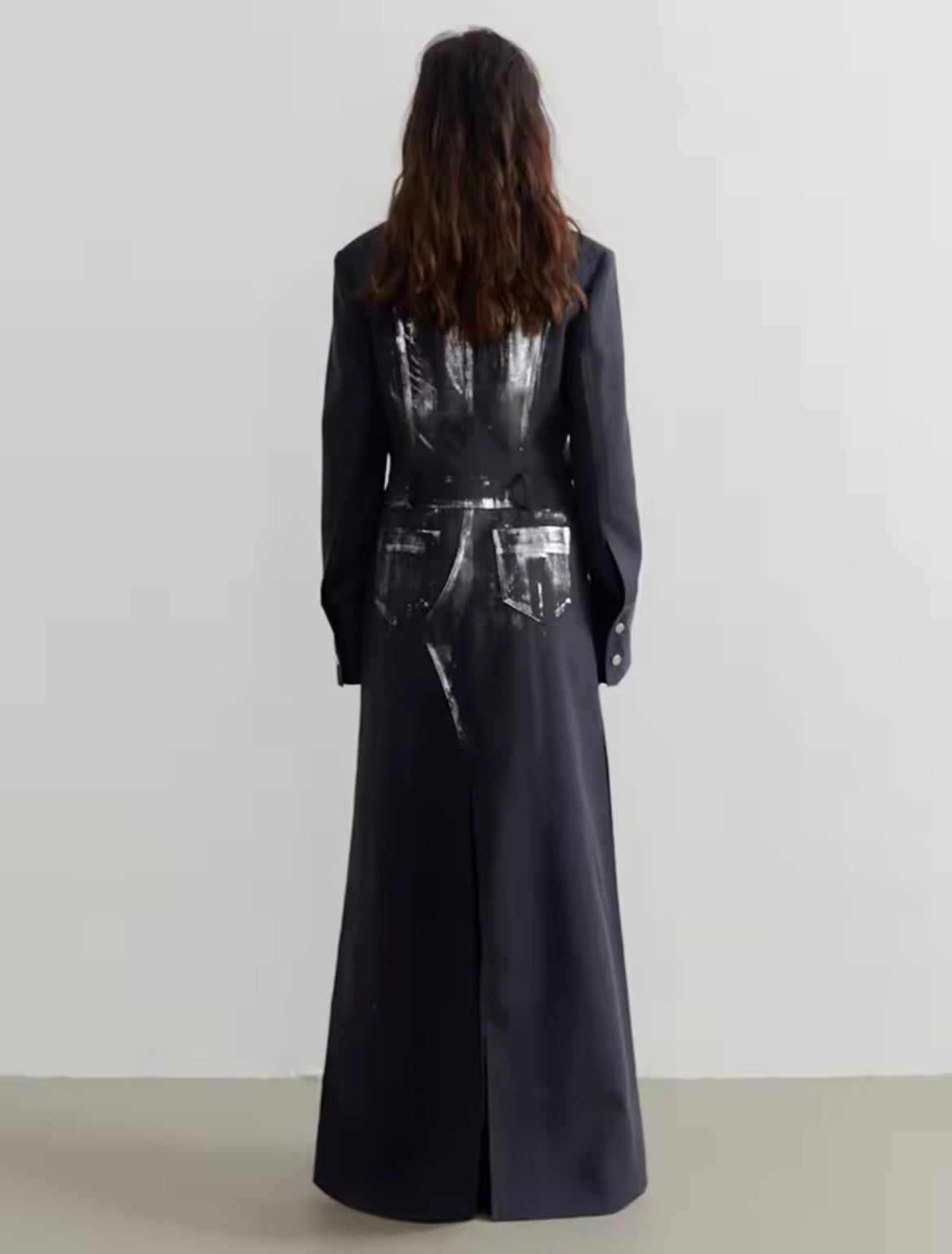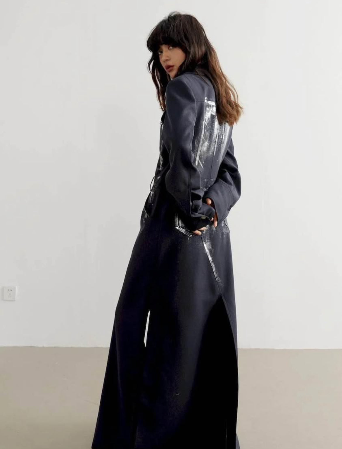 Expertly designed, the Splash painted long Blazer boasts a true-to-size fit with a slightly oversized feel. At 5'3", our model shows off a longer jacket, while the length varies based on height, offering a versatile and stylish option for all body types. Elevate your wardrobe with this statement piece.